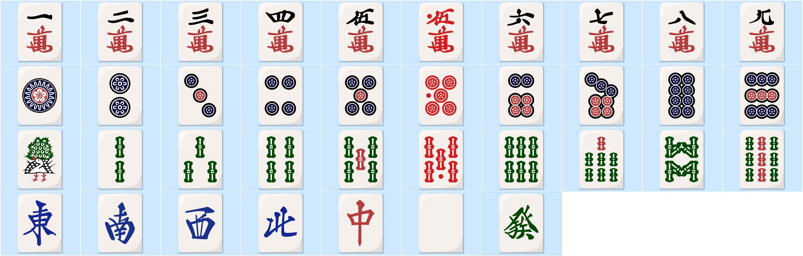 A set of tiles for riichi mahjong. Art by FluffyStuff.