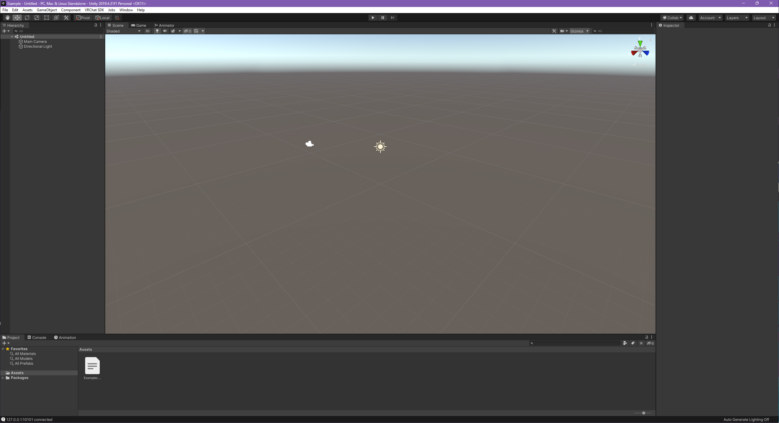 A Unity project with a default Unity scene, as generated by the VRChat Creator Companion for use in creating VRChat worlds7